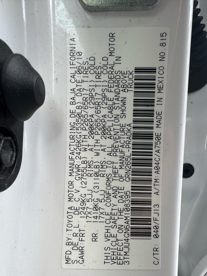 Vehicle Inquiry for 2010 Toyota Tacoma 2WD Double V6 AT PreRunner (Natl)